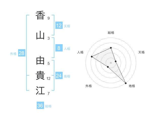 香山 由貴江さんの天格は12画の1点!
