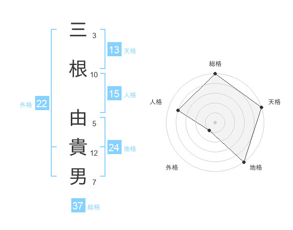 三根 由貴男さんを姓名の画数から五運を鑑定
