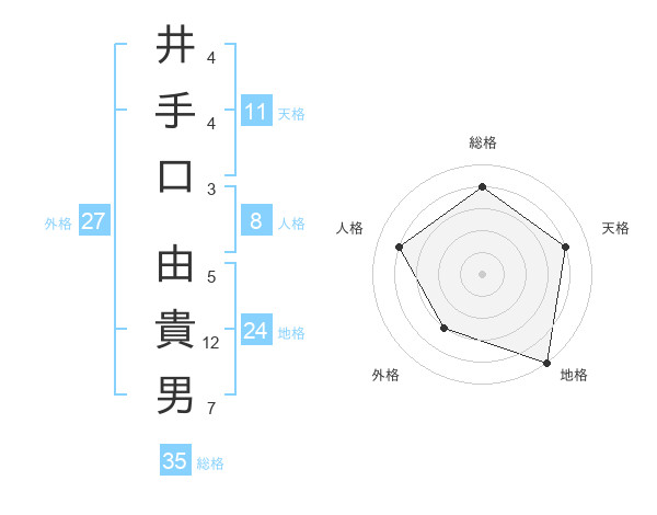 井手口 由貴男さんの総格は35画の4点!