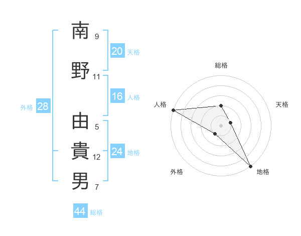 南野 由貴男さんを姓名の画数から五運を鑑定