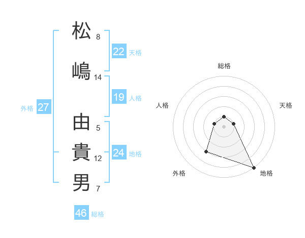 松嶋 由貴男さんを姓名の画数から五運を鑑定