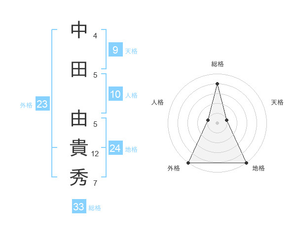 中田 由貴秀さんを姓名の画数から五運を鑑定