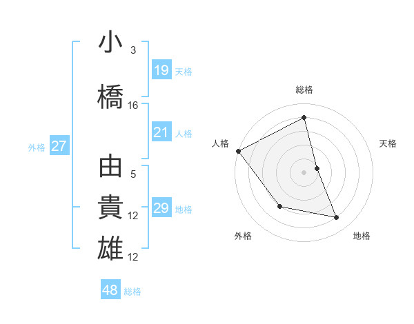 小橋 由貴雄さんの総格は48画の4点