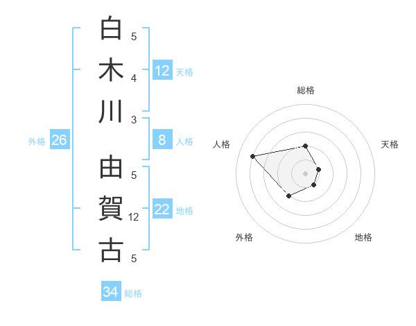白木川 由賀古さんの総格は34画の2点!