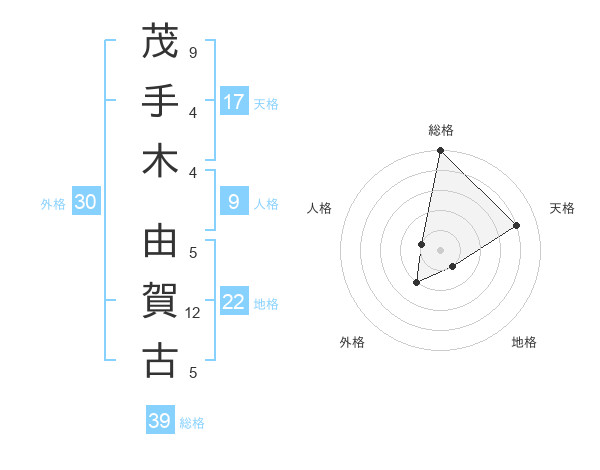茂手木 由賀古さんを姓名の画数から五運を鑑定