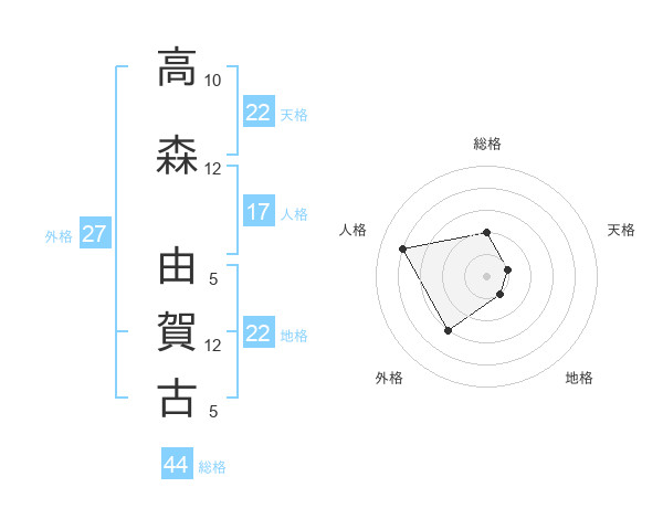 高森 由賀古さんを姓名の画数から五運を鑑定