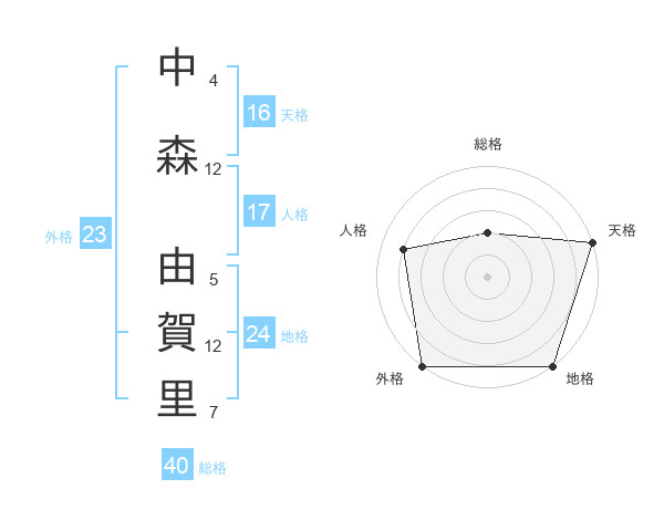中森 由賀里さんを姓名の画数から五運を鑑定