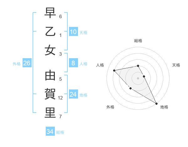 早乙女 由賀里さんを姓名の画数から五運を鑑定