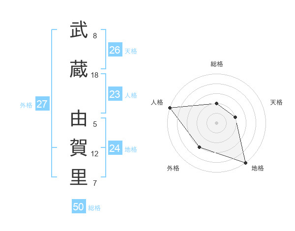 武蔵 由賀里さんを姓名の画数から五運を鑑定