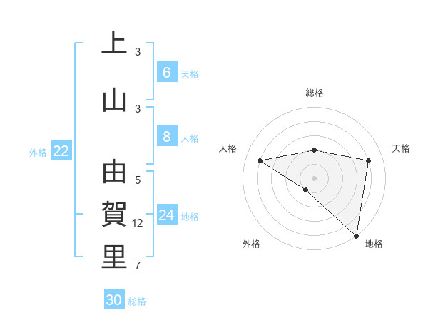 上山 由賀里さんの総格は30画の2点