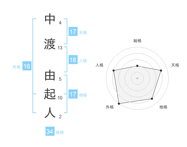 中渡 由起人さんの天格は17画の4点!