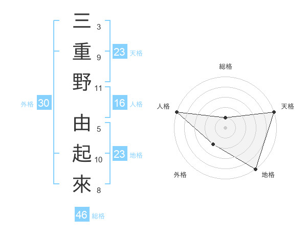 三重野 由起來さんを姓名の画数から五運を鑑定
