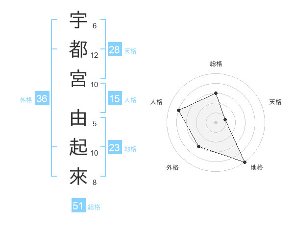 宇都宮 由起來さんを姓名の画数から五運を鑑定