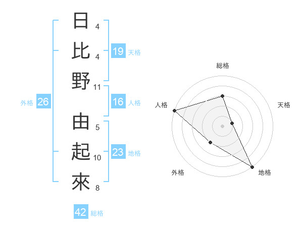 日比野 由起來さんを姓名の画数から五運を鑑定