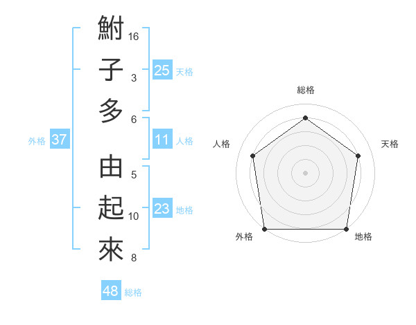 鮒子多 由起來さんを姓名の画数から五運を鑑定
