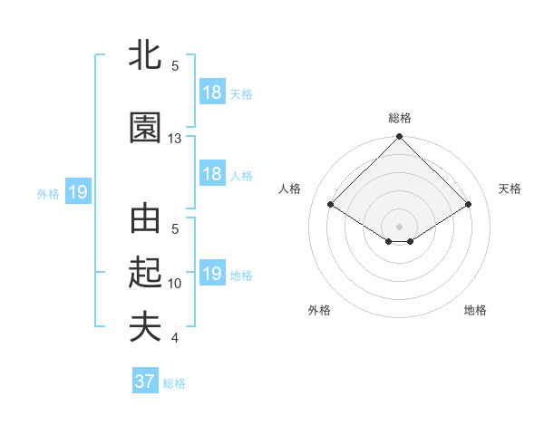 北園 由起夫さんを姓名の画数から五運を鑑定