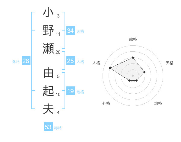 小野瀬 由起夫さんを姓名の画数から五運を鑑定