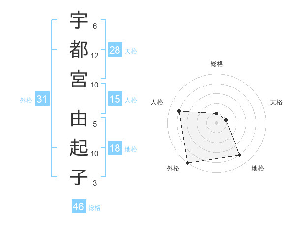 宇都宮 由起子さんを姓名の画数から五運を鑑定