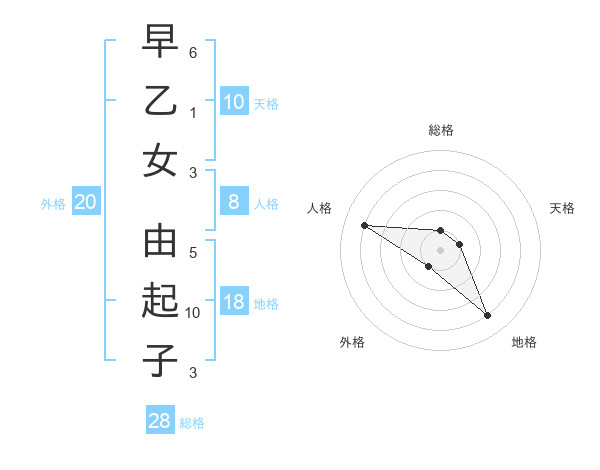 早乙女 由起子さんの総格は28画の1点!