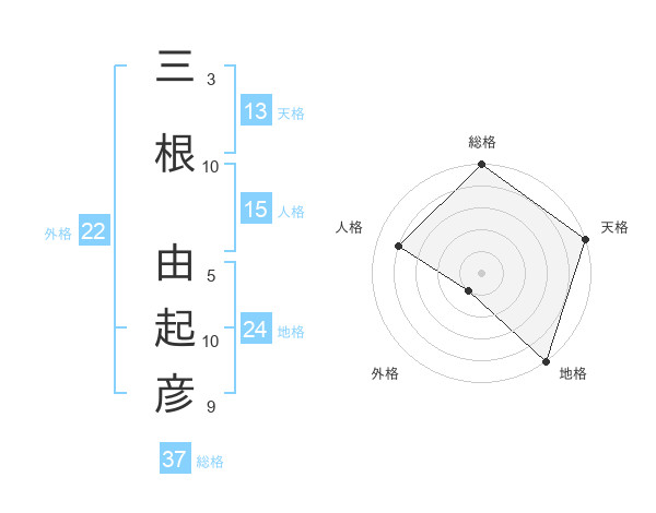 三根 由起彦さんを姓名の画数から五運を鑑定