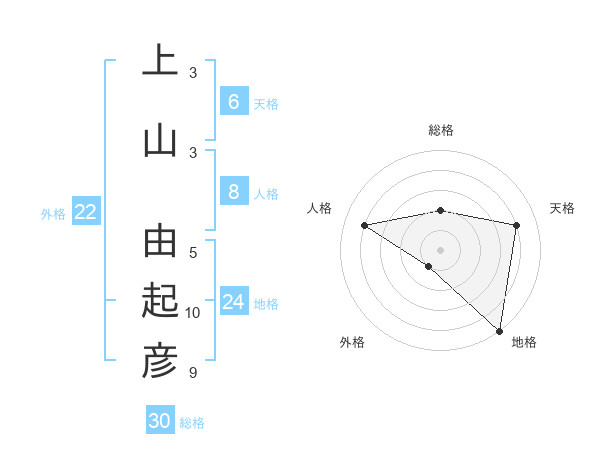 上山 由起彦さんを姓名の画数から五運を鑑定