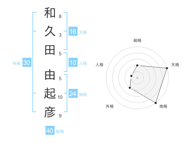 和久田 由起彦さんの天格は16画の5点!