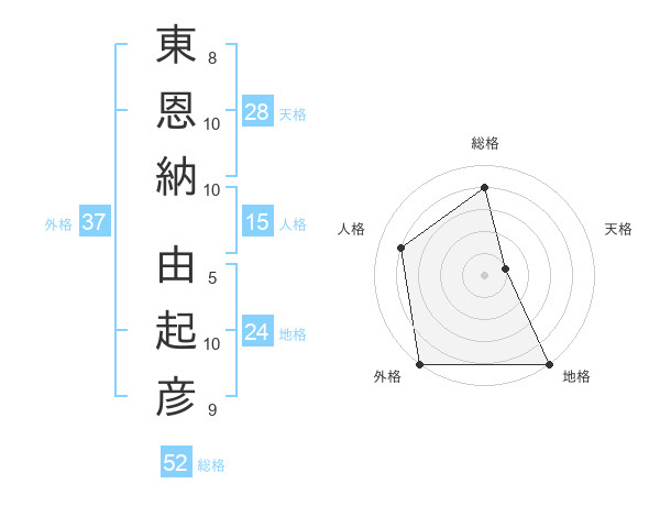 東恩納 由起彦さんを姓名の画数から五運を鑑定
