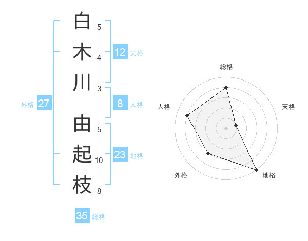 白木川 由起枝さんの総格は35画の4点!