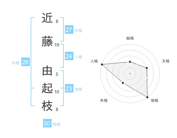 近藤 由起枝さんを姓名の画数から五運を鑑定