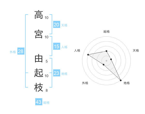 高宮 由起枝さんを姓名の画数から五運を鑑定
