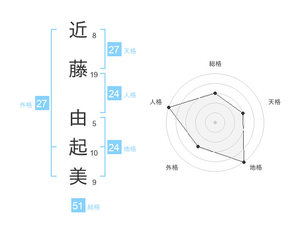 近藤 由起美さんを姓名の画数から五運を鑑定