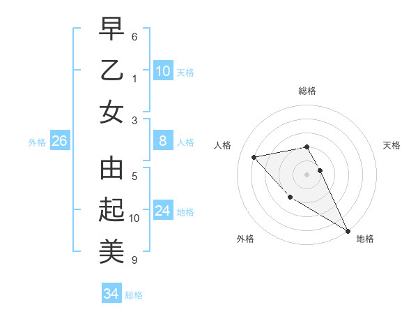 早乙女 由起美さんを姓名の画数から五運を鑑定