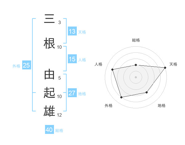 三根 由起雄さんを姓名の画数から五運を鑑定