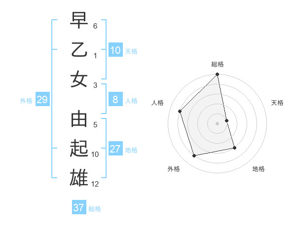 早乙女 由起雄さんを姓名の画数から五運を鑑定