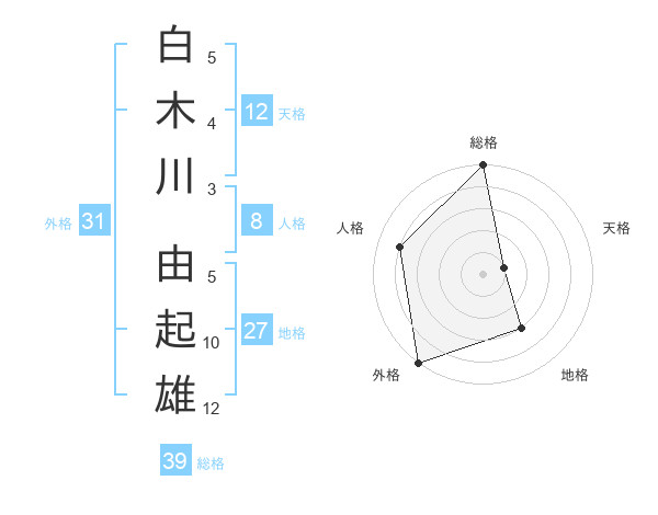 白木川 由起雄さんを姓名の画数から五運を鑑定