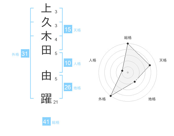 上久木田 由躍さんを姓名の画数から五運を鑑定