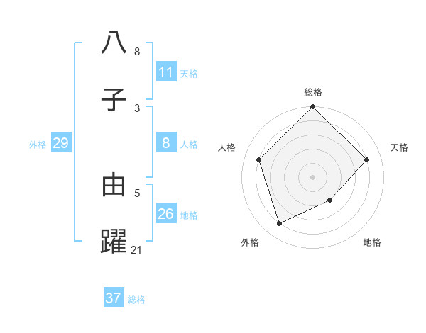八子 由躍さんの総格は37画の5点!
