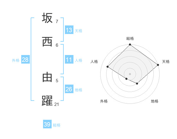 坂西 由躍さんを姓名の画数から五運を鑑定