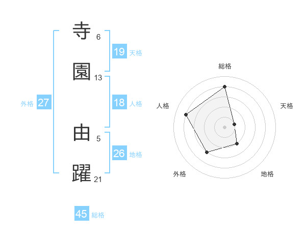 寺園 由躍さんの総格は45画の4点!