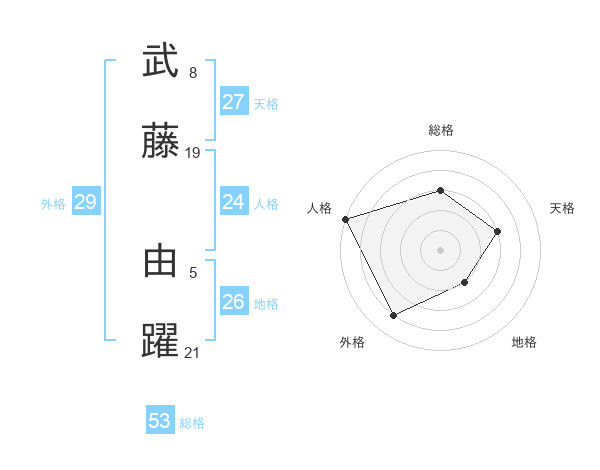 武藤 由躍さんの総格は53画の3点!