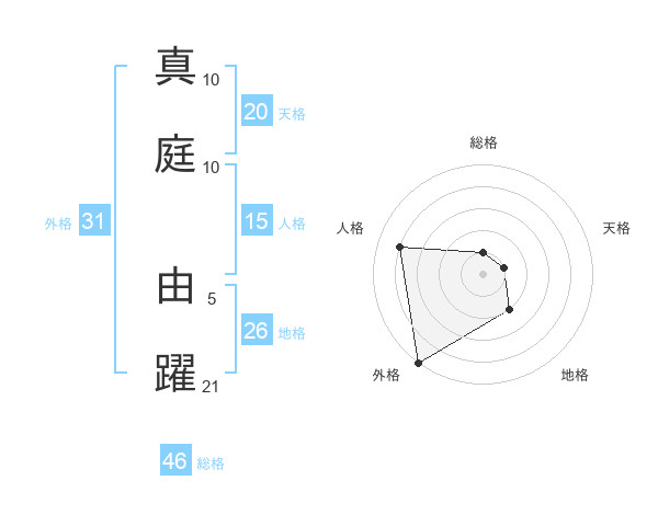 真庭 由躍さんの外格は31画の5点!