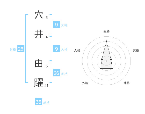 穴井 由躍さんの総格は35画の4点!