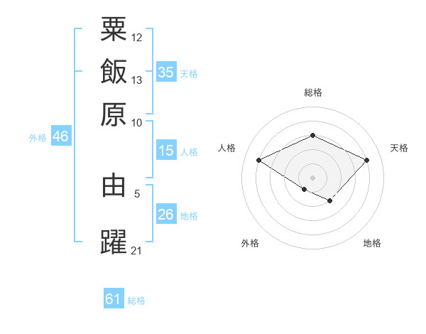 粟飯原 由躍さんを姓名の画数から五運を鑑定