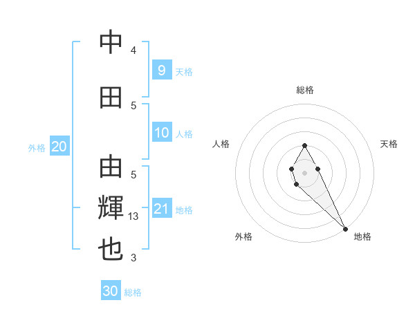 中田 由輝也さんを姓名の画数から五運を鑑定