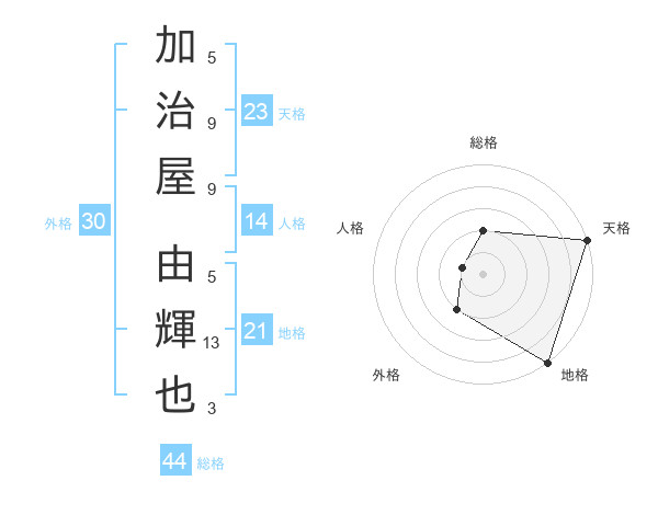 加治屋 由輝也さんを姓名の画数から五運を鑑定