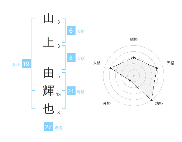 山上 由輝也さんを姓名の画数から五運を鑑定