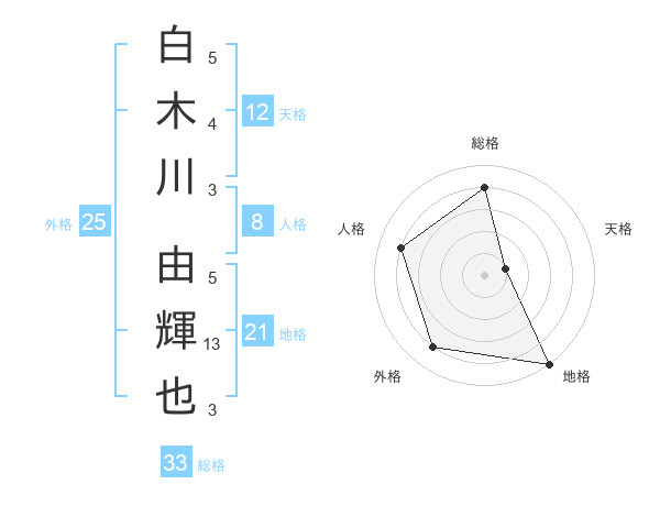 白木川 由輝也さんを姓名の画数から五運を鑑定