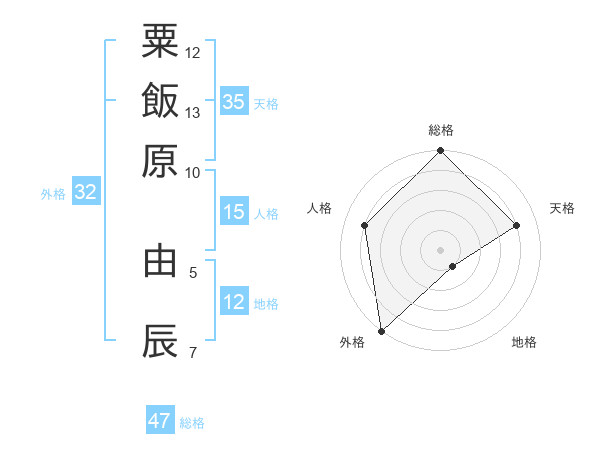 粟飯原 由辰さんの総格は47画の5点!