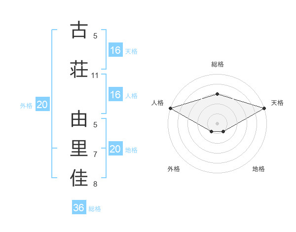 古荘 由里佳さんを姓名の画数から五運を鑑定