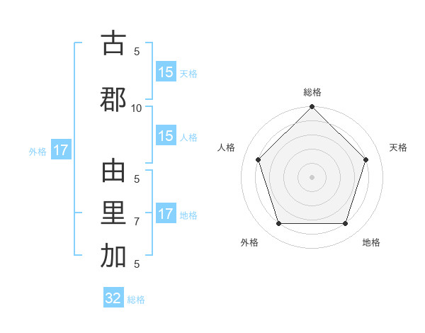 古郡 由里加さんを姓名の画数から五運を鑑定
